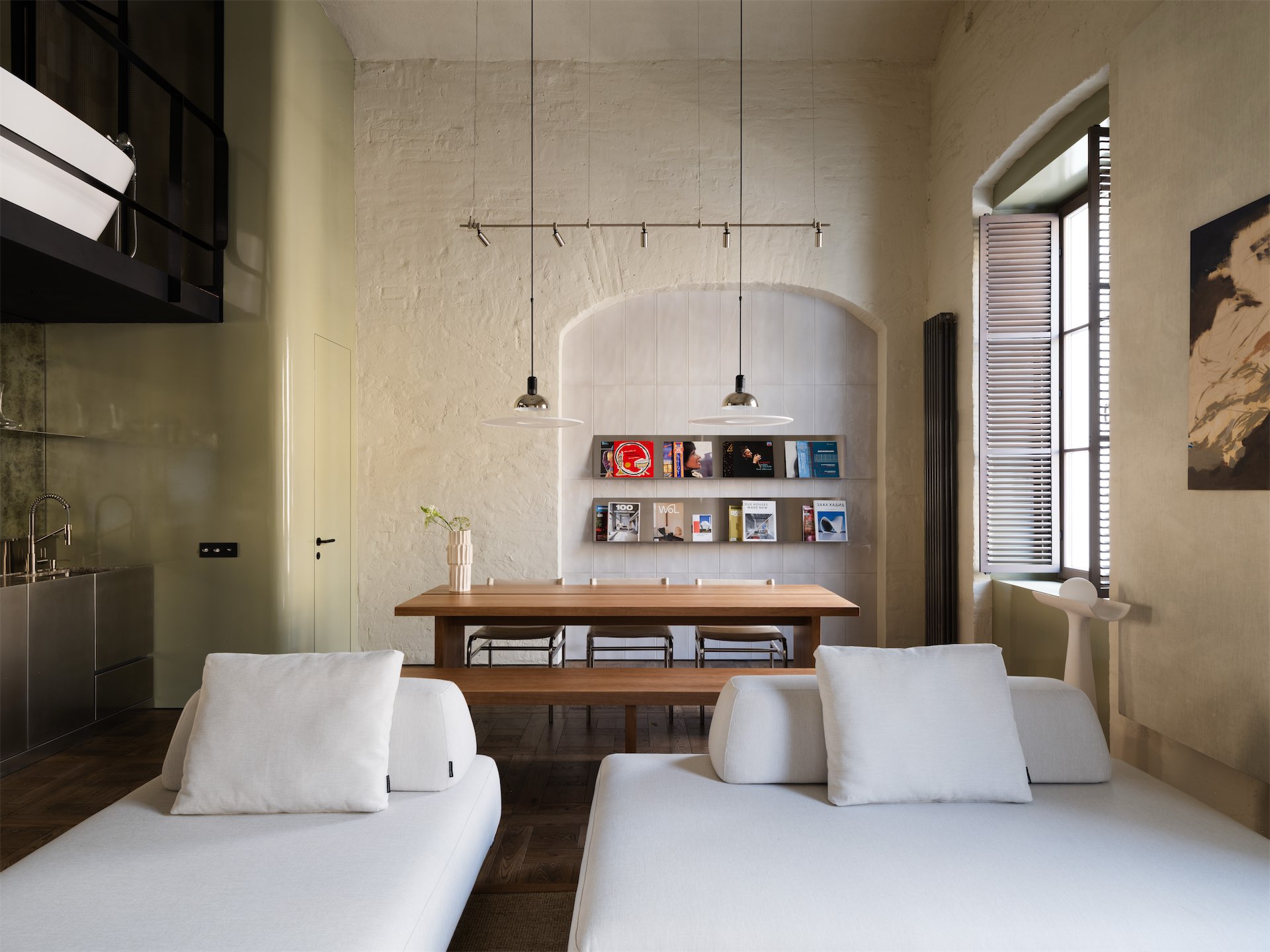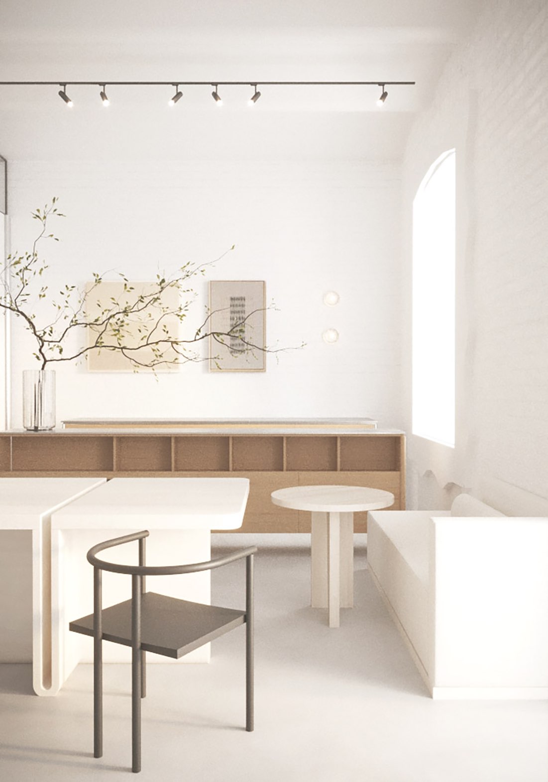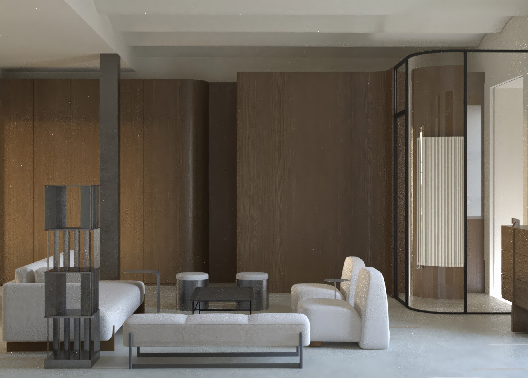 Пространство может меняться: каждый новый взгляд куратора задает новое звучание. Для меня особенно важно проявление характера именно через взаимодействие предметов и тем, а не через яркий, активно заявленный интерьер или акцентную идею. Интерьер получается светлым, обволакивающим, напоминающим «кокон». При всей нейтральности мы уделяли особое внимание материалам и фактурам: они неброские, но тактильные, глубокие. Контрасты возникают не столько за счет цвета, сколько за счет сопоставления: теплое дерево, холодный металл, бетонный пол. Это история о взаимоотношениях.