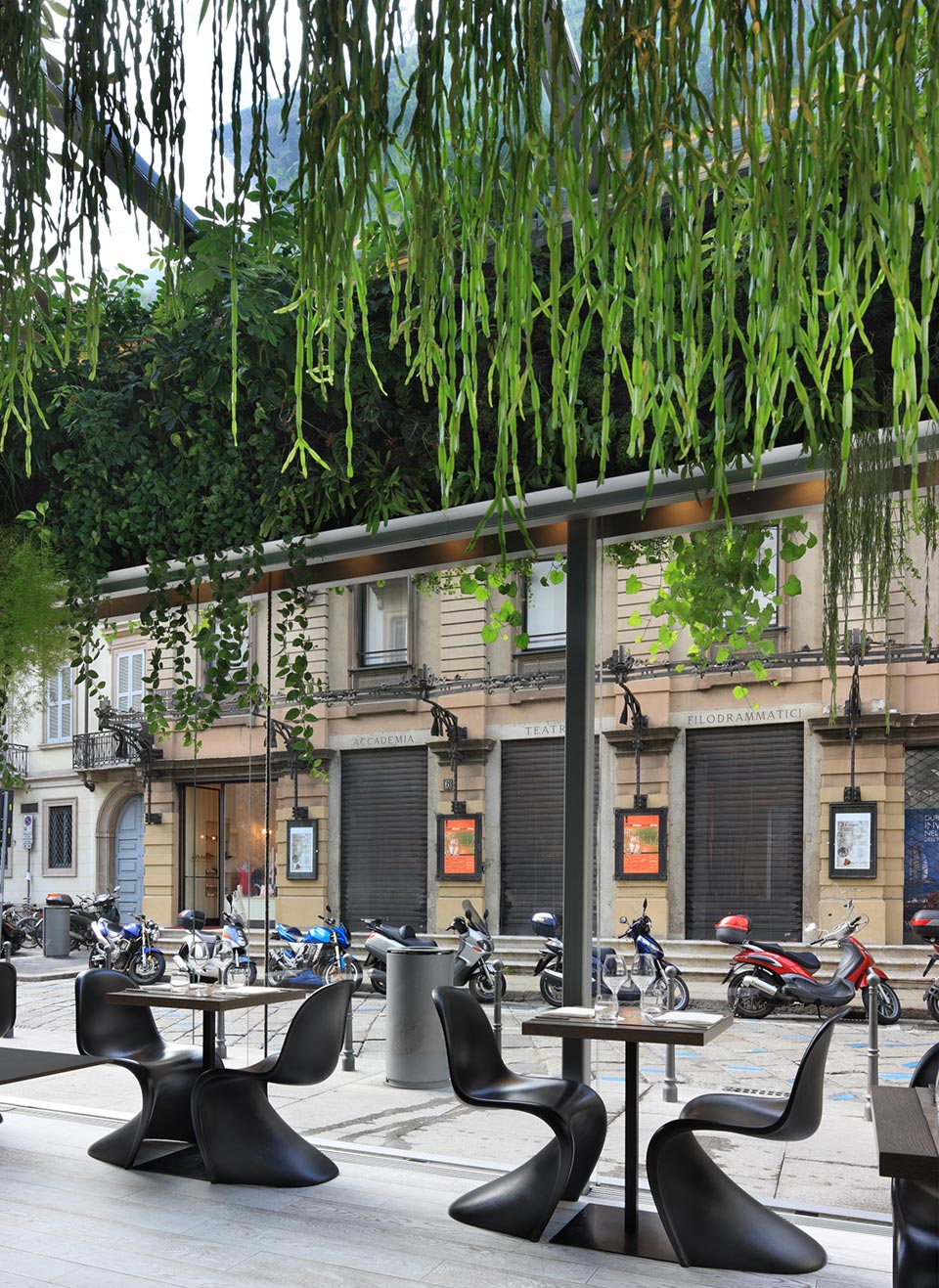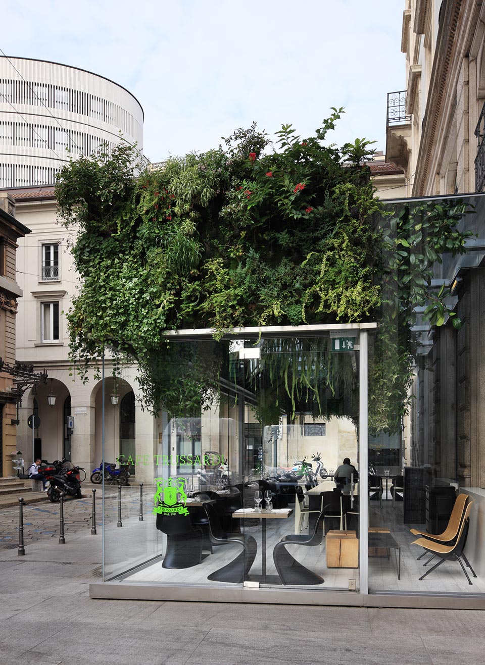 Проект представляет собой расширение кафе Trussardiв Милане. Архитекторы создали закрытую террасу с подвешенным висячим садом по проекту ботаника Патрика Бланка. Более 120 видов растений интегрированы в архитектуру для улучшения микроклимата и качества воздуха.