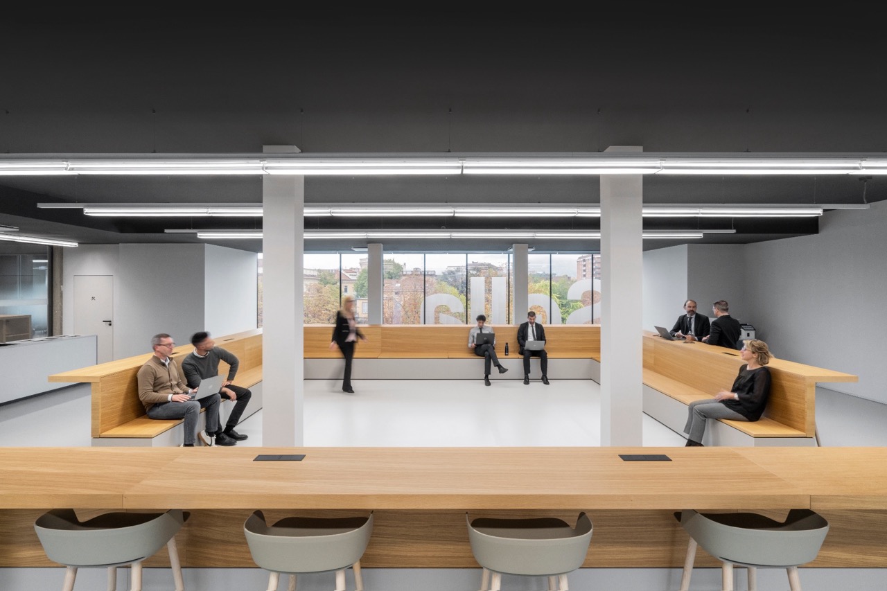 Проект Working in a Piazza — реконструкция исторического здания под центр открытых инноваций в Турине. Карло Ратти переосмысливает офис как городскую площадь для случайных встреч, обмен идеями и коллективной работы. Пространство включает гибкие рабочие зоны, центральную агору для мероприятий и систему сенсоров для мониторинга микроклимата и энергопотребления.