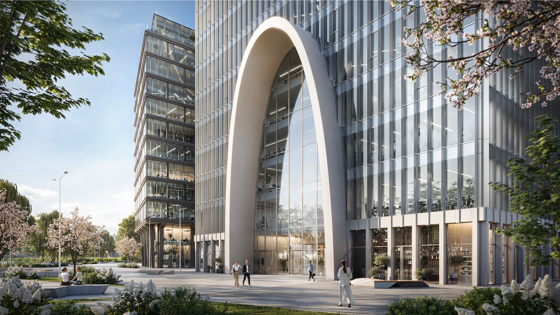 Оба здания будут размещены на общей открытой площади с ровным рельефом, вымощенной плитами, где появится прогулочная аллея, объединяющая территорию бизнес-центров. Озелененное пространство послужит источником вдохновения и ментальной перезагрузки будущих резидентов.